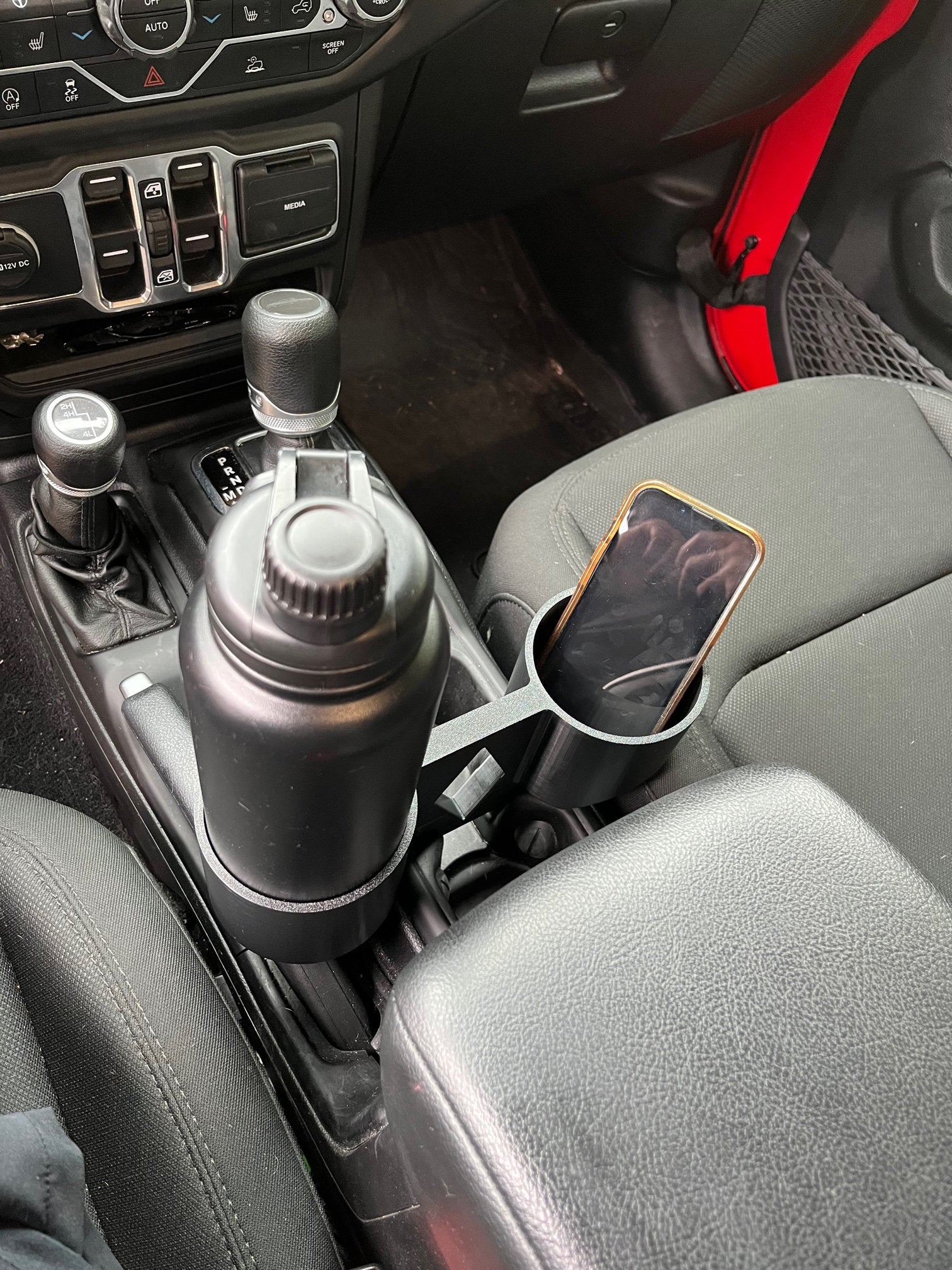 Perfect for couples, families, or anyone who needs maximum beverage and storage flexibility. This Jeep JL accessory transforms both sides of your center console into functional storage spaces for drinks, phones, snacks, and gear.