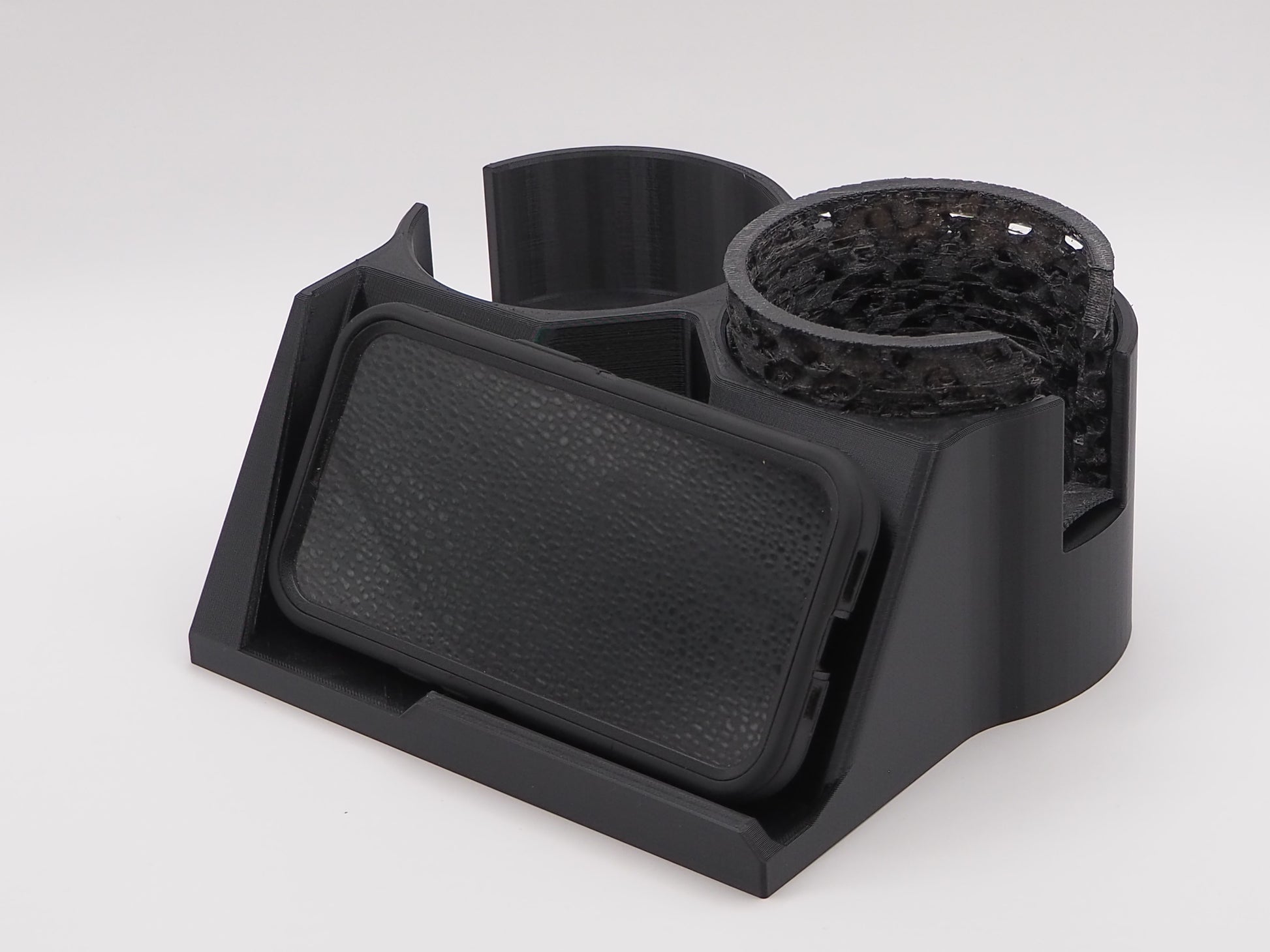 Secure Storage: Phone lips and angled design prevent spills and drops